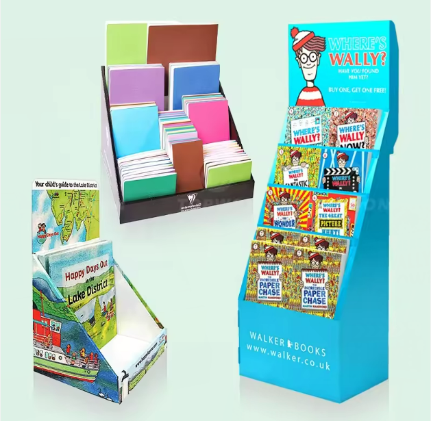 For bookstores and supermarkets specializing in children’s picture books, corrugated cardboard display racks are a more common choice. Unlike home-use picture book displays, these commercial racks typically hold a larger quantity and variety of books. They also feature themed displays for different holidays and seasons, and the paper racks are easier to swap out and more cost-effective.